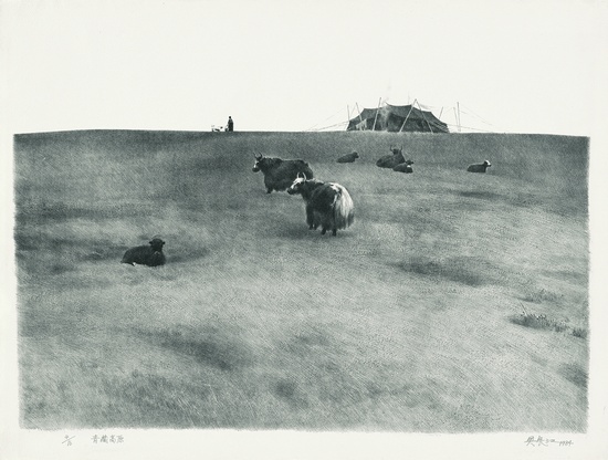 长江是坚持走写实道路的艺术家。他认为,在艺术的长河中,写实的道路并未也不可能穷尽,因为内容无比丰富又在不断变化着的客观世界,给写实艺术提供了取之不竭、用之不尽的资源,因为人们对现实的感知也不断在扩展与深化,由此会不断影响人们的艺术感觉与创造,会赋予写实作品以新的时代感和新的审美趣味。长江的写实功夫是通过几十年的训练不断取得与提高的。除了在学校围墙内的基础训练外,主要是通过在深入生活过程中的写生不断加以完善。长江有自己的“生活基地”,定期到那里去生活,去体验,去画素描、速写,从事艺术创作。他的生活基地是甘肃、青海、四川、西藏高原地带藏族群众居住的地方。他先后去那里有数十次之多。他说:“藏族聚居区高原之旅,每次都有新鲜的感受和体会。”他爱那里的山山水水,说自己“在这雄山壮水之中尽情开怀地感受着大自然的力量和它的神奇”。他更喜爱这里的藏族同胞,他们“没有人为的修饰,率真朴素,充满野性的活力。在他们强悍的外形里饱含着英武的挺拔之美”。长江还在这里的人物与山水情貌中,体会它们蕴含的精神,领悟其内在的意义,从而使自己的心灵世界得到净化与升华。在这个过程中,他越来越清晰地认识到,当前我们的“艺术创作缺少内含的张力和淳厚,最重要的原因是艺术家脱离了对大自然的感悟,缺少了用自己的心灵与自然虔诚对话的勇气所致”。他努力走近这奇妙自然的深处,走向藏胞纯朴的内心世界。他作品涉猎的题材很广,自然景色、生产劳动场面、宗教仪式、民俗节日、寺庙民居……有多至数十人参与、气氛热烈的大场面,也有在茫茫原野中少量的人物与牦牛。他专注于西藏题材不是为了猎奇,也不是出于形式美感的目的,而是为“藏民族精神世界中一种永恒的生命活力”所驱使。他说:“我想通过表现西藏人生活的精神性来揭示人类生存的永恒意义。”他在追寻和发现藏族群众丰富的精神世界奥秘的过程中,也在寻找自己作为艺术家立身的精神之本,并寻找到他表达西藏精神的独特艺术语言。可以这样说,这种语言既从客观世界也从他主观世界中孕育和提炼。客观与主观两者的有机交融,形成一种独特的艺术境界。这是与藏族同胞的人生理想与宗教观念在精神上相对应的语言:对自然的虔诚,对真善美的执著,内容与形式的单纯和质朴。