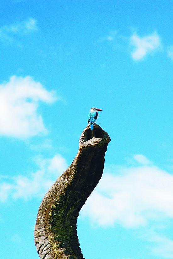 和谐一曲 非洲的天空湛蓝如洗,猛然抬头,发现了这只伫立在“大象鼻子”上小憩的小鸟,不经意的一次抬头便成就了这幅令人会心一笑的和谐画面。李宇亮(外交部非洲司)摄于乌干达