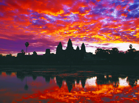 小吴哥 日出时分,几缕阳光从云缝中投射上来,瞬间把天空变成了调色板,配上吴哥窟的剪影,自然与文化完美结合。王昕龙(驻澳大利亚大使馆)摄于柬埔寨