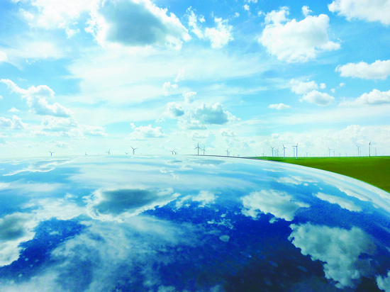 云海翻腾 远处晴朗的天空白云朵朵,近处利用汽车前机盖将天上的白云反射其中,便出现了云海翻腾的壮观景象。丁胜(驻康斯坦察总领馆)摄于罗马尼亚