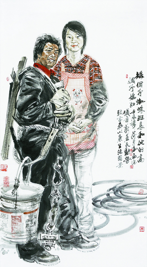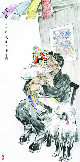 矮个子蜘蛛班长和他的高个子媳妇(中国画) 151cm×82cm 冯 远