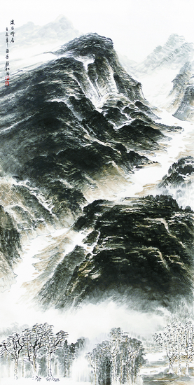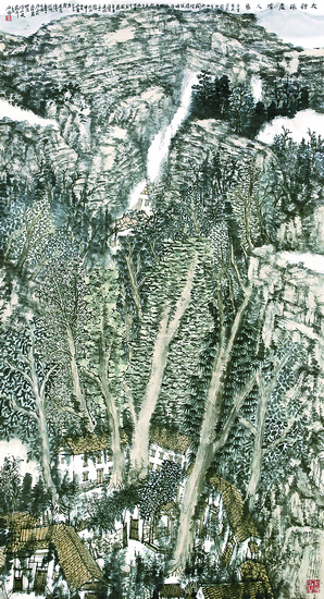 溪谷晴晨(中国画)136cm×68cm 许钦松
