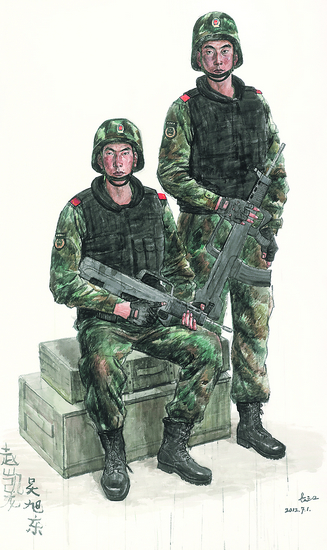 武警战士像(水彩)182cm×109cm 吴长江