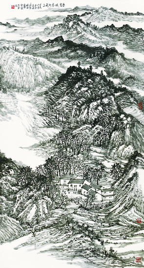 太行深处有人家(中国画)180cm×96cm 何加林