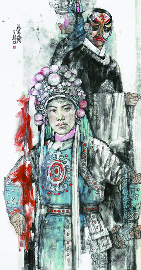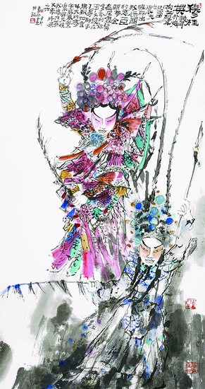 穆桂英(中国画)180cm×96cm 马书林