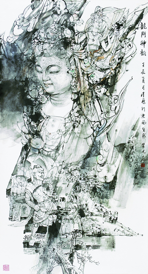 龙门神韵(中国画)180cm×96cm 朱 凡