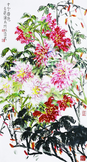 洛阳牡丹十分春色(中国画)180cm×96cm 何水法
