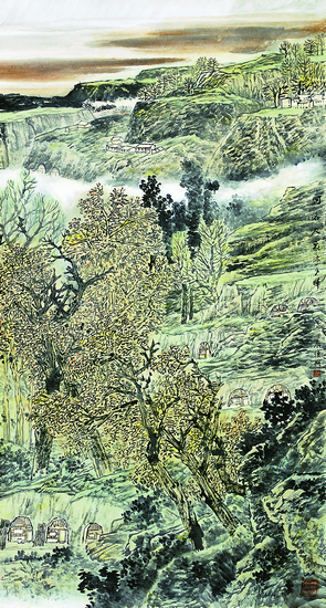春光依恋大别山(中国画)180cm×96cm 王永亮
