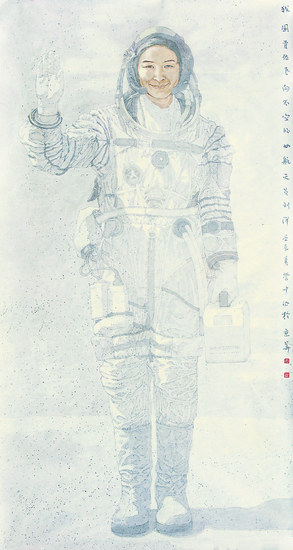 我国首位飞向太空的女航天员——刘洋(中国画)180cm×96cm 韩学中