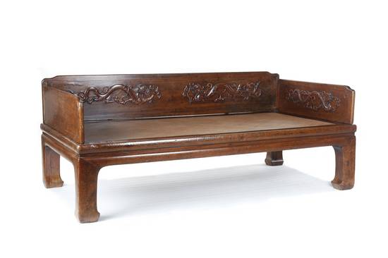 清早期 三屏风独板嵌雕龙纹围子罗汉床