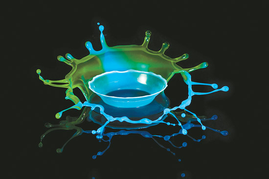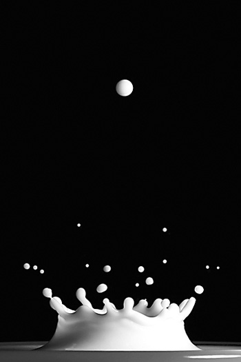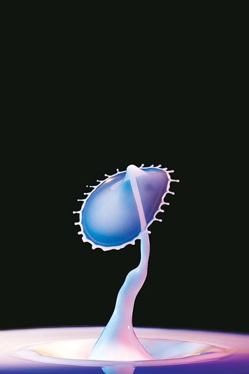 在国外,像我一样痴迷于液体高速摄影的爱好者被称为“Dropper”。每个人都有着从简单入门、尝试模仿、逐渐摸索窍门到精心创作的历程。其中最为经典的模仿范本就是牛奶皇冠,我视其为液体摄影入门尝试的典范。在手工拍摄皇冠时,不但磨练拍摄技巧,更是对耐心的培养。第一次捕捉到皇冠形态的欣喜,也唯有拍摄者自己能够体会。