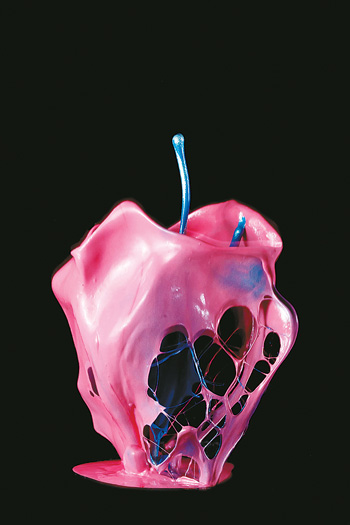 如今我的创作已不局限于特定的拍摄方式或辅助工具。在构思过程中,怎样达到理想中的形态、质感、色彩与光线才是我关注的重点,而不是将注意力过多分散于拍摄设备上,这需要耐心细致的前期准备与测试。例如布光,在经过反复拍摄后可得出结论;大体上,透明的液体更适合逆光进行照明,凸显液体的晶莹剔透;而透光度较差的液体则适合从正面与侧面进行照明以勾勒其形态。不同液体有着截然不同的特性,在单纯使用清水和牛奶后,我着手对各类液体进行混合测试,可多数“完美构思”与拍摄后的效果大相径庭,打击与失落感不言而喻。经过长时间的拍摄,事实证明所有的实践累计哪怕是失败的,对我而言都是难能可贵的经验。“如何不重复上一次的作品?”是我脑海中烙印最深的一个念头,这个简单的念头执行起来却一点也不简单。