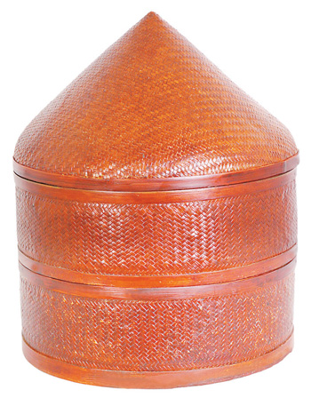 这只提篮是金再军在嵊州收购来的。那天他在一位农户家拍照时,无意中看到角落里放着一只提篮。此篮用很细的竹丝编织而成,精密而结实,它不同于一般的篮子,上面还有篮盖。这只篮看起来貌不惊人,金再军却一眼就喜欢上了。
