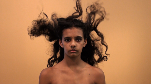 克里斯蒂安·汤普森的三频录像《炙热》是一个非常美丽的作品。平静的风穿过女孩的头发,凉爽到令人昏昏欲睡,安详的面部表情渗透出一种空灵感,将女孩描绘得宛如极端炙热中一个引发幻觉的美景。