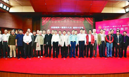 齐鲁画风——庆祝党的十八大胜利召开美丽山东中国画晋京展预展开幕仪式上合影