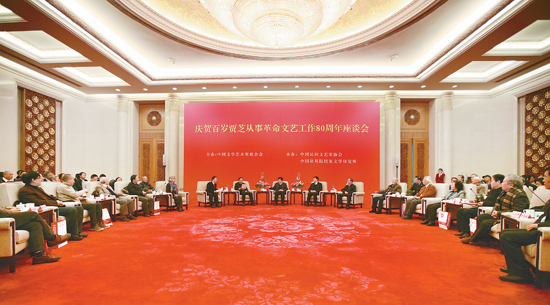 12月12日,“庆贺百岁贾芝从事革命文艺工作80周年座谈会”在北京人民大会堂隆重召开,李屹、黄浩涛、白庚胜、路侃、罗成琰、王平凡、刘魁立、罗杨、乔晓光、张锠、刘铁梁、郎樱、杨亮才、贺嘉、金茂年等100余人出席座谈会。本版摘发了有关领导、民间文艺界的新老同仁、贾芝的亲属及家乡代表的发言与贺信,从多个角度回顾了贾芝的重要贡献,以及他对祖国和人民忠贞不渝的坚定信念,潜心事业、承担使命的奉献精神和深入民间、扎根田野的工作作风。