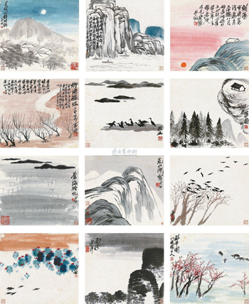 齐白石1922年设色纸本《山水图册》(局部)在嘉德秋拍中以4600万港币拔得全场头筹