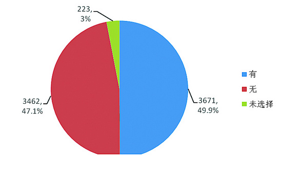 选择“有”的:3671人,约占回收问卷总量的49.9%;