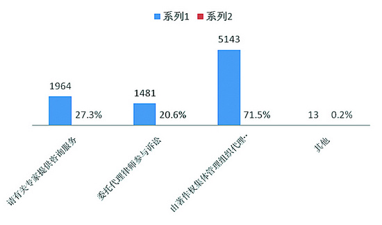 选择“由著作权集体管理组织代理诉讼”的:5143人,约占参与选择总量的71.5%;
