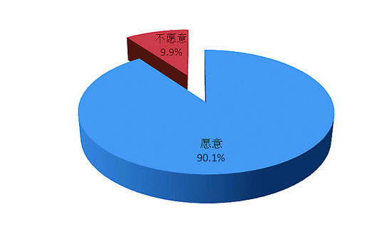 选择“愿意”的:6263人,约占回收问卷总量的90.1%;