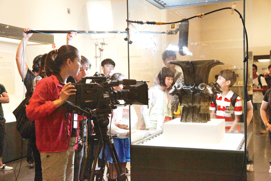 剧组正在拍摄四羊方尊