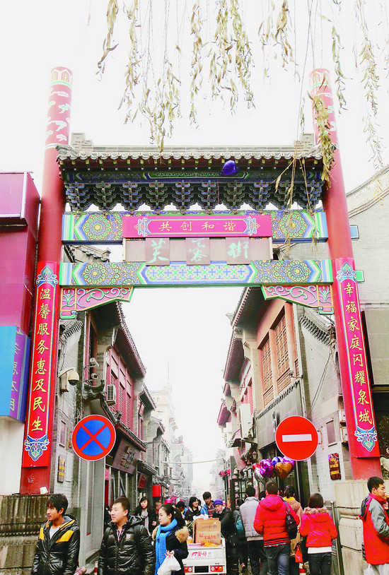 芙蓉街,北起济南府学文庙,南至泉城路,长432米,平均宽约6米,是济南市的老商业街,全国最为著名的小吃街之一,被誉为“齐鲁第一小吃街”。据说,从前的芙蓉街曾是济南府最为繁华之地,商贾聚居,多有豪门大院,而繁华如过眼烟云,现在的芙蓉街更多的以小吃闻名,对于大多数人来说,来芙蓉街就是冲着它的小吃而来。
