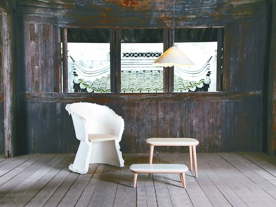 作为第二代宣纸椅子的设计,“蝶”更进一步将纸的能力发挥到极致。本来柔软的宣纸,在特定的形态下呈现出超乎想象的承重能力。整个椅子的制造方式源于余杭纸伞的糊伞工艺。