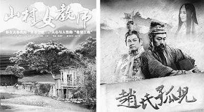 歌剧《山村女教师》、《赵氏孤儿》海报。