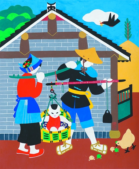 而在赵家治的理想中,农民画市场应该是一个有层次的市场:有衍生品,有面向旅游市场的低端作品,有进入装饰领域的画作——“国画有的受众不懂,油画又买不起或者不喜欢,所以一些投资者和收藏家可以将目光投向农民画;还有就是面向大展、收藏的高端农民画——高端的永远只会占少数。”赵家治说。