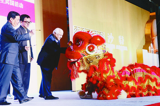 近日,“璀璨中华”——2013年沙特“杰纳第利亚遗产文化节”中国主宾国活动在北京首都博物馆启动,此次活动由文化部联合国家宗教事务局、北京市人民政府、江西省人民政府、甘肃省人民政府以及中华人民共和国驻沙特阿拉伯王国大使馆共同主办。在启动仪式上,文化部外联局副局长张爱萍与沙特驻华大使宰德共同为国际巨星成龙颁发了本次文化节“中国文化大使兼主宾国馆荣誉馆长”的聘书。成龙现场履行起“馆长”的义务,对中国主宾国的概况与特色进行了介绍,并希望能够通过这样的活动让世人对中华文化有更多的了解。他还开玩笑地说,接受这个聘书以后,再去沙漠取景、拍摄飞车等戏份时就更方便了。之后,成龙为现场舞动的雄狮“点额”,而沙特驻中国大使宰德和张爱萍则为雄狮“点睛”,共同开启中国文化赴沙特展览之旅。