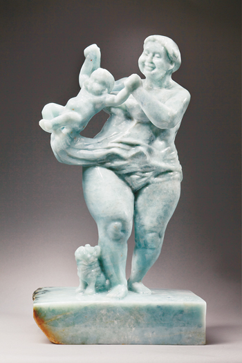 本次展览不仅是对雕塑家许鸿飞艺术历程的一次重温,更是艺术家对艺术精神的一次新的体悟展和嘱托。许鸿飞的作品充满生活的趣味和哲理,他把这种趣味和哲理通过平民化的叙事方式呈现出来,用翡翠、汉白玉、铸铜塑造了形态各异的胖女人雕塑。他以一种平民化的视觉将现代社会中久违的自然与生命凸显出来,在工业化坚硬而冷漠的线条中直觉而感性地发现当今几乎要失去的一种天然的美的形式。可以说,他将平民的身体放到了和神祗与英雄一样的高度,将凡人的生活提升到和信仰与史诗同样的等级。