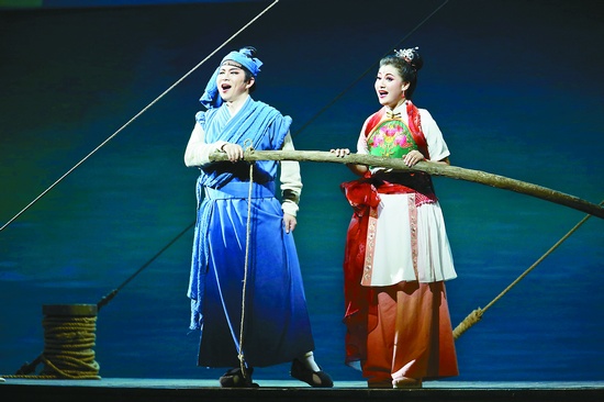 新编历史剧创作演出亮点鲜明,又有了新的突破。桂剧《七步吟》人物塑造上,曹丕在霸气阴险中有了宽容和亲情,曹植在才华忠厚中有些恃才傲物,甄宓在美丽多情中多了几分忧虑和刚烈,显现出许多新意。而以厚重、丰富、深刻见长的昆曲《景阳钟变》则是其中的佼佼者。还有一些新编历史剧亦可圈可点,向剧种本体回归是它们最大的共同点。