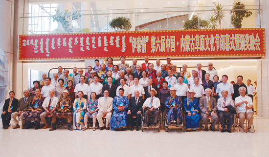 2009年7月15日晚,内蒙古自治区文学艺术杰出贡献奖颁奖晚会在乌兰恰特大剧院隆重举行,图为内蒙古自治区党委、政府和中国文联有关领导与获奖者合影