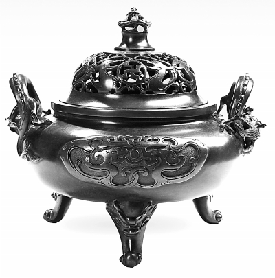 访遍了各大博物馆、古玩市场,翻遍了无数的典籍、资料,陈巧生逐一摸索出失蜡法工艺的10多道工序,包括制图、雕蜡模、装浇口、上料、煮蜡、烘烤模、浇铸打磨和做旧等,“要全手工制作,做一只香炉要耗时一个月左右,每道工序都很关键,其间不能有一丝一毫的疏漏,否则要一切推倒重来。”