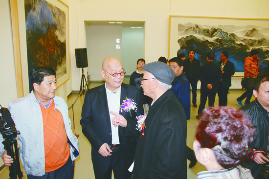 万鼎与原陕西国画院院长苗重安在画展上交谈