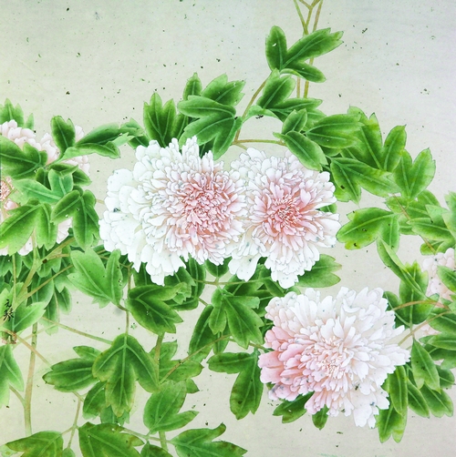 从孙恺的工笔画作品中可以看出,她对于自然物象的观察是细致入微、异常严谨的。她的精神世界则是非常博大的。从她的工笔人物及花鸟作品中可以看到,她笔下物象的造型、线条、色彩已经达到了一种运用自如的境界。无论是清新典雅的花鸟、人物,还是厚重凝练的山水画,在她的作品中似乎随处可见唐、宋、元、明、清传统的影子。这与她长期研究历代精华,倾心温史是分不开的。难能可贵的是,她的工笔画和岩彩画作品中没有丝毫的匠气、滞气、刻板之嫌,洋溢着一种清新、高雅、平静、灵秀之气,这在工笔画领域中是很难达到的脱俗境界。