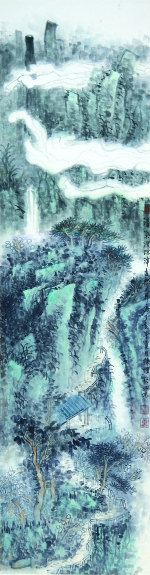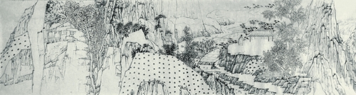 在山水画的学习、创作中,孙恺始终坚持了师古人、师自然、师造化的原则。在创作过程中,她始终以南齐谢赫“气韵生动、骨法用笔、应物象形、随类赋彩、经营位置、传移模写”六法为准则。一个真正的画家所创作的作品从来都是以激情作为支撑的。激情来源于生活,激情来源于感动。一幅打动人的优秀作品应该是画家感悟生活、心潮澎湃的结晶。那些闭门造画、营造臆想的所谓画家,不管他的技法有多么纯熟,也不管他的构思有多么巧妙,只要脱离了生活的根基,只要远离了自然的脉搏,他笔下所产生的画作就一定是苍白无力与单薄肤浅的,就一定是形而上、情而下,无血无肉、徒有虚表,毫无思想内涵的素幅彩纸。这些年来,孙恺广涉名山大川及穷庐茅舍,她以女性特有的敏感之心,反复体味揣摩大自然的情态意蕴,反复感受触摸老百姓的艰辛沧桑。她的写生经历不只是简单的体会自然与感受生活,她更注重了一种对自然万象深层次、全身心的彻底融入之情。她在这十多年里,写遍祖国的大好河山。北方太行山脉的十渡她去写生过五次,两次去写生石家庄附近的嶂石岩,多次写生平谷的京东大峡谷,以及北京郊区的燕山、云蒙山、白杨沟、棋盘山等等。太行山的郭亮、南坪、红旗渠一带,孙恺一去写生就是五六个月,从烈日炎炎的七月一直到下过三场大雪的腊月底才回家过年,一次就在太行山上连续经历酷夏、金秋、严冬三个季节。在南方的张家界,从二零零三年大年初十写生到七月二十八日,她饱览了张家界从山上到山下整个春天和初夏才肯下山。六次去黄山,从山脚写到山顶,她还写生了黄山脚下的好多地方,如休宁大峡谷、歙县地带的小桥流水人家,西递、宏村等。她也写遍了广西漓江的每一流域,如漓江的阳朔、兴坪一带的叠彩山、象鼻山、穿山、塔山、冠岩山、净瓶山、浪石奇渡、九马画山、黄布倒影、杨堤、草坪、田螺峰、碧莲峰、书童山等等。她还几次赴四川的青城山、峨眉山、四姑娘山、乐山、齐云山、九寨沟以及川西的海螺沟体验写生。近几年她的视线又转向西部的新疆、西藏一带,而且创作出一批表现大美西部的系列作品。不久,她又去了云南的西双版纳热带大森林。大量的写生作品中,倾入了她对真实生活大量的有情有义的主观感受。从她连续十多年长期在深山老林、经历了多少个酷暑和严寒,以及顶风冒雪的坚韧举动中,可以窥见她对于自己所钟爱的中国画艺术的追求是何等的执着。在浩瀚的美术创作大军中,谁能够真正触摸到生活与自然的脉搏,谁就能够创作出最感人、最生动的艺术作品。要使自己的作品感动别人,就要在创作的过程中先感动自己,这是一条既简单又深奥的真理。所有的这些,孙恺用自己近乎苦行僧的实际行动默默地实践了,真诚地做到了,这是一件非常不容易的事情。孙恺的意笔山水来源于她对自然山水的真实感受。她所创作的大量山水画作品,无论从形式到内容,都向我们展示了一种毫不做作、毫无臆想的真情流露。艺术的难点在于艺术家个体艺术符号的确立。经过了二十余年的绘画创作与艺术历练,孙恺终于从传统艺术之外、生活之中寻到了属于自己的艺术表达方式。她的山水画作品中彰显出属于她自己的一种既传统又现代,既具象又抽象的艺术语汇。实现这个目标:画家要经历无数次痛苦的心灵煎熬,要体味情感怅然若失的无措和真正的形式蜕变。