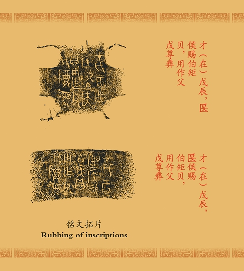 伯矩鬲内壁上的铭文也一样很简单。大体意思是,某一日,匽侯赏给矩一些贝,他为了纪念这份荣耀,为其已故的父亲作此礼器。铭文中也提到了“匽侯”二字。