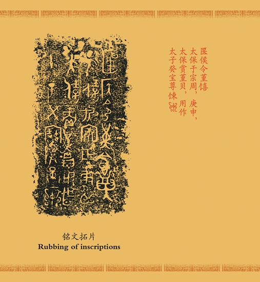 堇鼎内壁铸有铭文,大体意思是,匽侯命令名为堇的大臣去宗周(现在西安)给太保送吃的,太保是第一位匽侯的父亲,因为千里迢迢不容易,太保就赏赐了堇一些钱,堇为了纪念此事,铸了这个鼎。