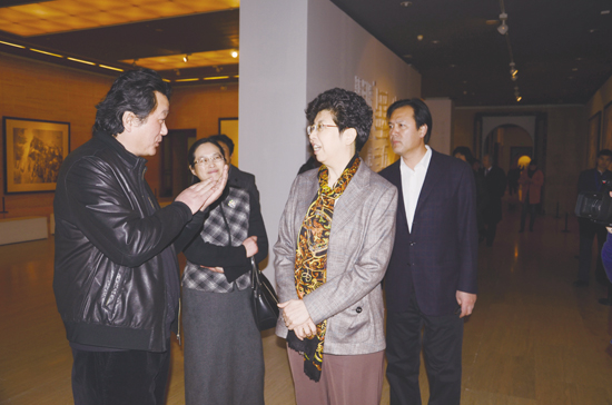 中国文联党组书记、副主席赵实与画家张江舟在展览现场