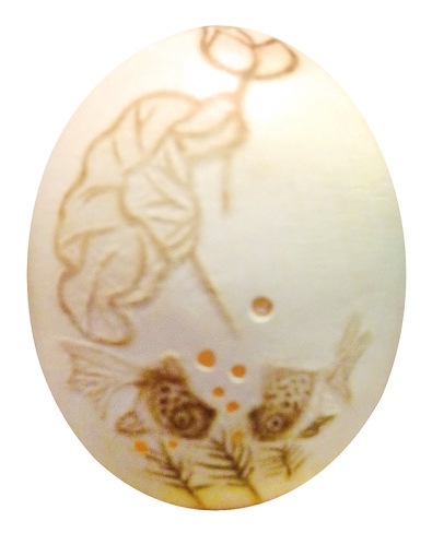 明清时期,民间庆贺孩子出生有送红鸡蛋的习俗,因此商贩们会专门卖红色染过的鸡蛋,称其为“彩蛋”。为图生意兴隆,商贩们又各出奇招,在彩蛋上画些花鸟、鱼虫、脸谱等图案。再后来,由画入雕,这小小空间里的世界是越来越精彩。大体说来,蛋雕的功夫主要有两种,一种是描文勾勒,在蛋皮表面以浮雕、阴刻、阳刻来成画,类似于美术中的素描。颜色较深的鸡蛋壳是孕育此上乘功夫的绝佳场地。另一种则是◇空雕刻,精髓在于◇刻,习此门武艺之人技艺是否纯熟精湛一目了然。
