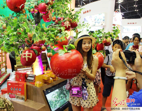 6月29日至7月3日,在中国(太原)煤炭交易展览中心举办的首届山西文博会上亮点颇多,临汾市吉县的艺术苹果树便是其中一个。艺术苹果树吸引了众多参观者的目光,大家都纷纷在这棵造型漂亮、果香袭人的苹果树前拍照留影,并当场试吃。