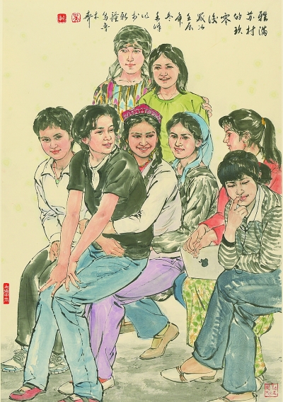 好在新疆中国画家们有了更深的创新,一大批少数民族画家加入其中,用他们自己熟悉的生活笔墨,创作新疆的中国画。因为中国画原本就是各民族画家共同创造出来的艺术样式,是名副其实的全中国各民族共同所有的画种。