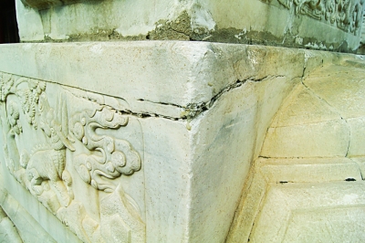 北京石刻艺术博物馆坐落在北京市海淀区真觉寺(俗称五塔寺)。真觉寺始建于明,是我国第一批全国重点文物保护单位。石刻艺术博物馆成立于1987年,收藏着1700多件套散落在北京各地的石刻文物。该馆以露天陈列为主要形式,各种自然和人为因素造成部分石刻文物老化残损。7月初,在美银美林“艺术保护项目”的赞助下,石刻艺术馆的14件“身患重症”的石刻文物开始接受“治疗”。这14件文物的创作年代从公元二世纪到十九世纪不等,但都出现风化、断裂、缺失、斑驳等状况,有些文物表层已经出现粉化、空鼓甚至剥落。石刻艺术博物馆介绍,修复方案的最终目的是有效地延缓石质文物的风化破坏速度,最大限度地将文物主体及所赋存的历史信息留给后人。