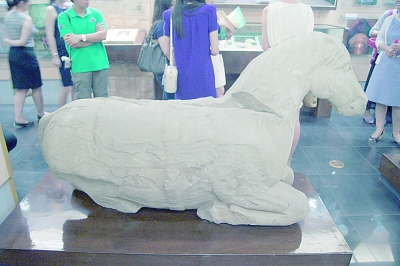 图为本次要保护修复的两件文物:元代石卧马和清嘉庆勒保夫妇诰封碑,文物的“病症”清晰可见。