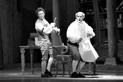 廖昌永(左)在《塞维利亚理发师》中扮演“大忙人”理发师费加罗。 王小京 摄