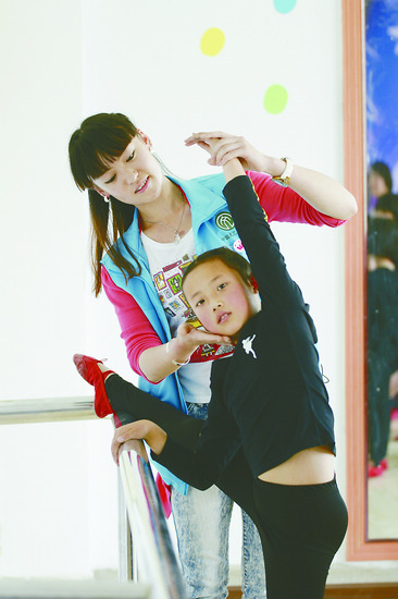 文艺志愿者张雅洁为孩子纠正舞蹈姿势