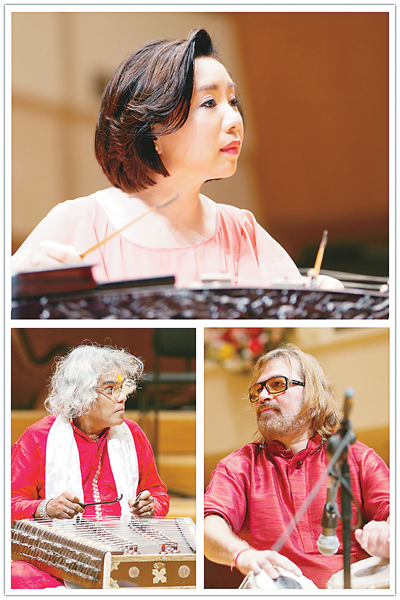 中国古老的扬琴与印度的桑图尔、塔布拉鼓相遇,会奏出怎样的美妙旋律?7月6日,在“中印之夜·刘月宁与印度音乐家新作品音乐会”上,一曲世界首演的《拉格·茉莉》令人叹为观止,扬琴的清亮音色、桑图尔的空灵滑音与塔布拉鼓敏捷而多变的重音默契配合,合奏出一曲独一无二的《茉莉花》。