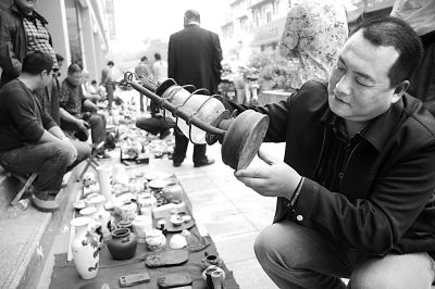 古玩艺术品要进入金融市场,离不开第三方的鉴定。图为山东某地古玩市场。CFP