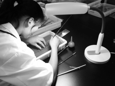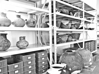 等待脱水处理的部分简牍。本报记者 龙军摄